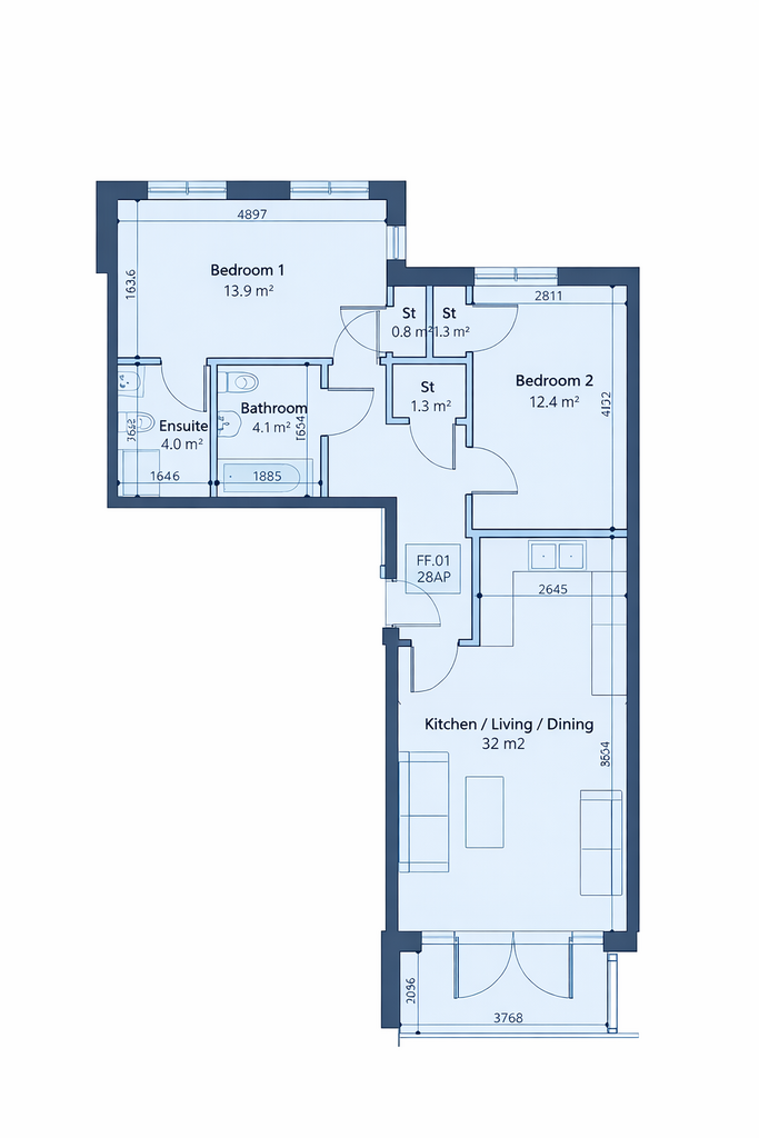 £ 2,750/month, min. 2 bedrooms