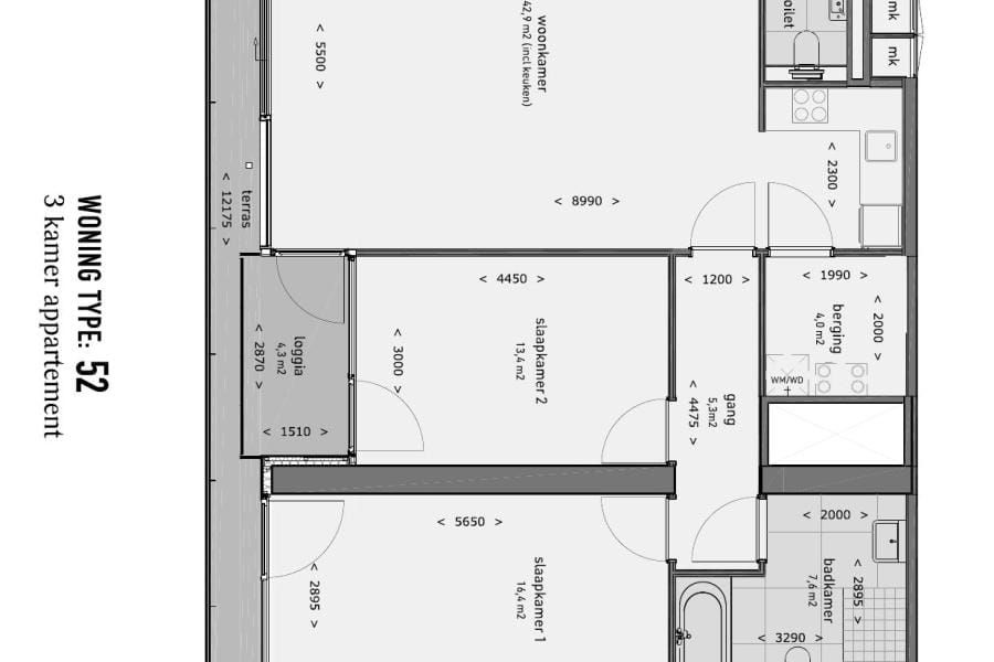 € 2,000/month, min. 3 bedrooms