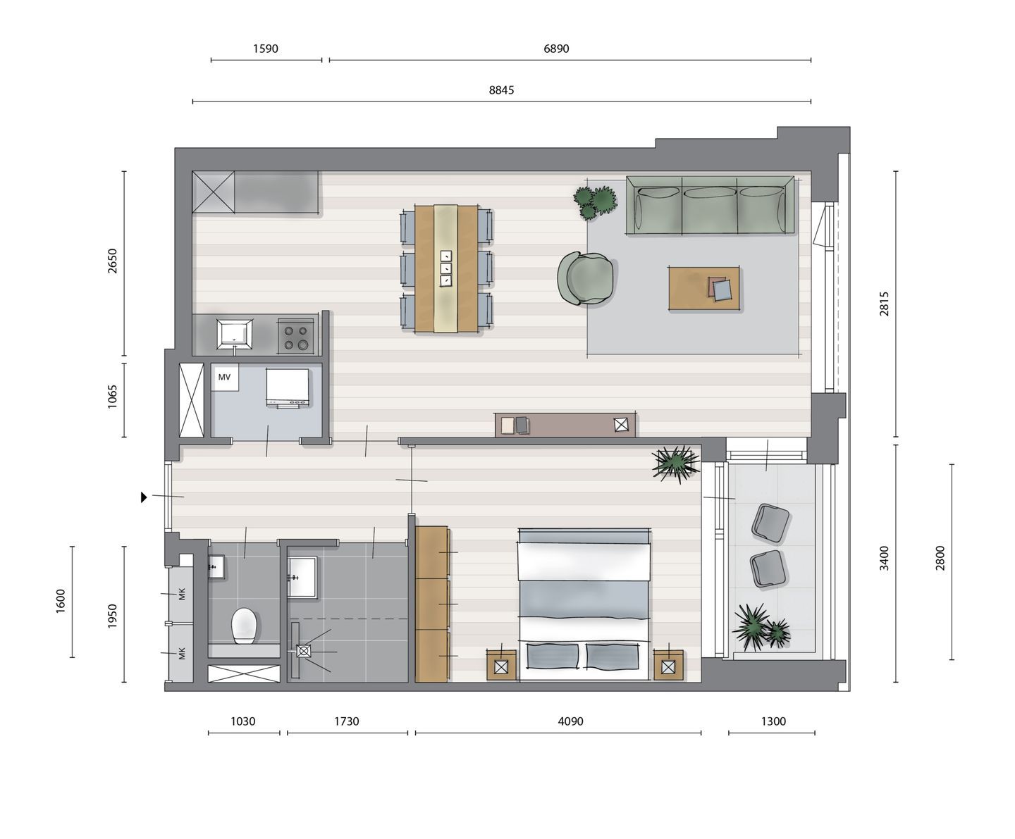 € 2,000/month, min. 2 bedrooms