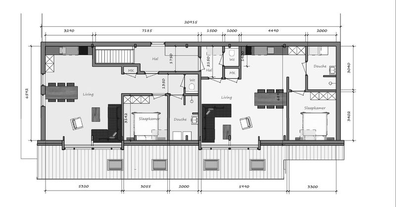€ 1,400/month, min. 2 bedrooms