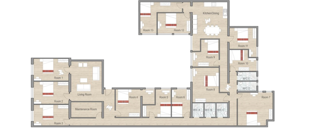 € 800/month, min. 1 bedroom