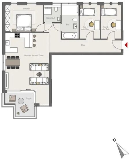 € 1,800/month, min. 2 bedrooms