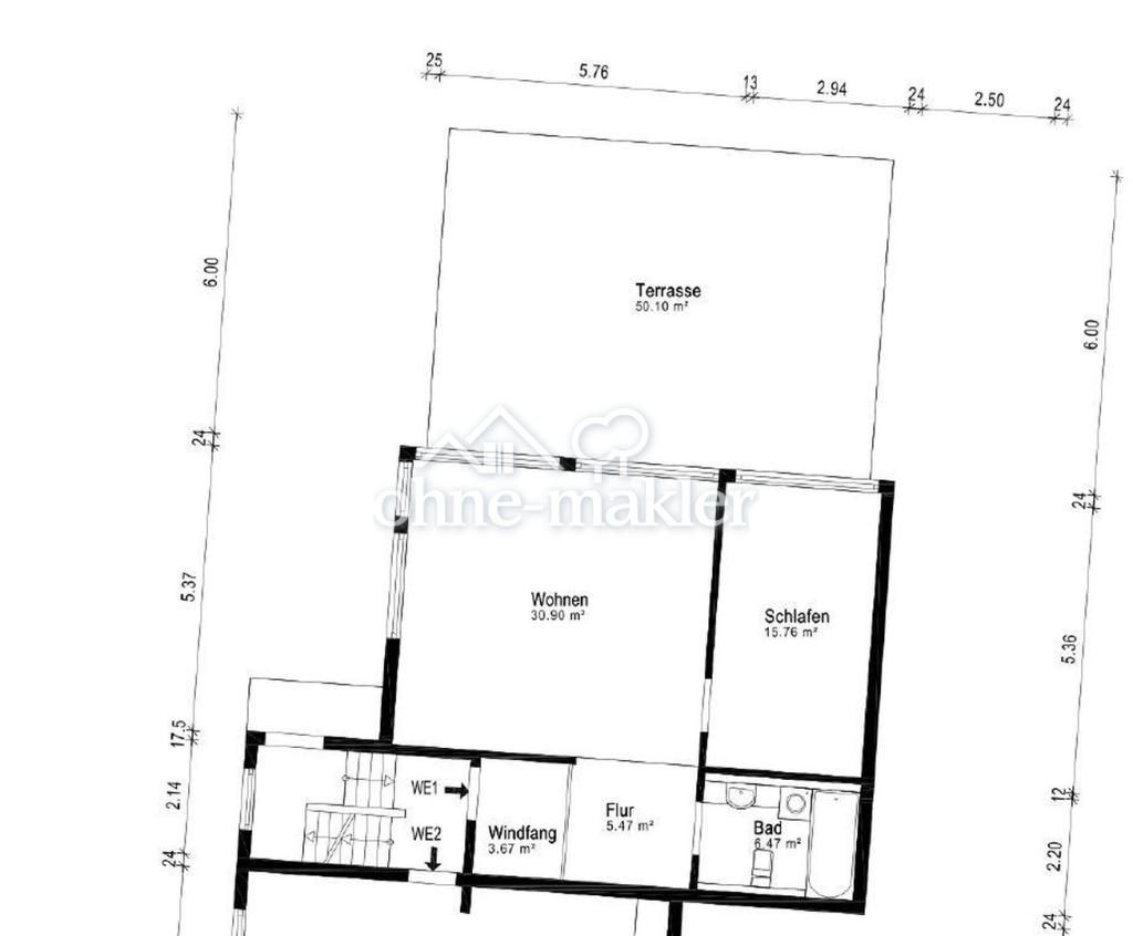 € 1,200/month, min. 2 bedrooms