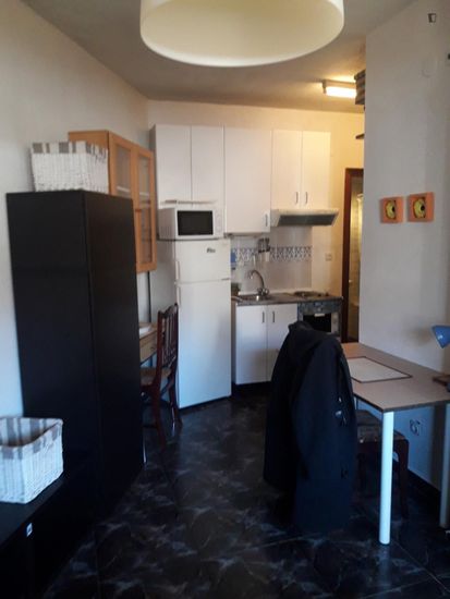 Welcome to your new cozy studio apartment at Madrid Capital! This stylish and compact living space offers everything you need for comfortable living. The open layout provides a versatile space for living and sleeping, with a modern kitchenette and a sleek bathroom. With its convenient location, you'll have easy access to nearby amenities and attractions. Priced affordably at € 775, this studio is a great option for those seeking a convenient and compact living arrangement. Don't miss out – schedule a viewing today!