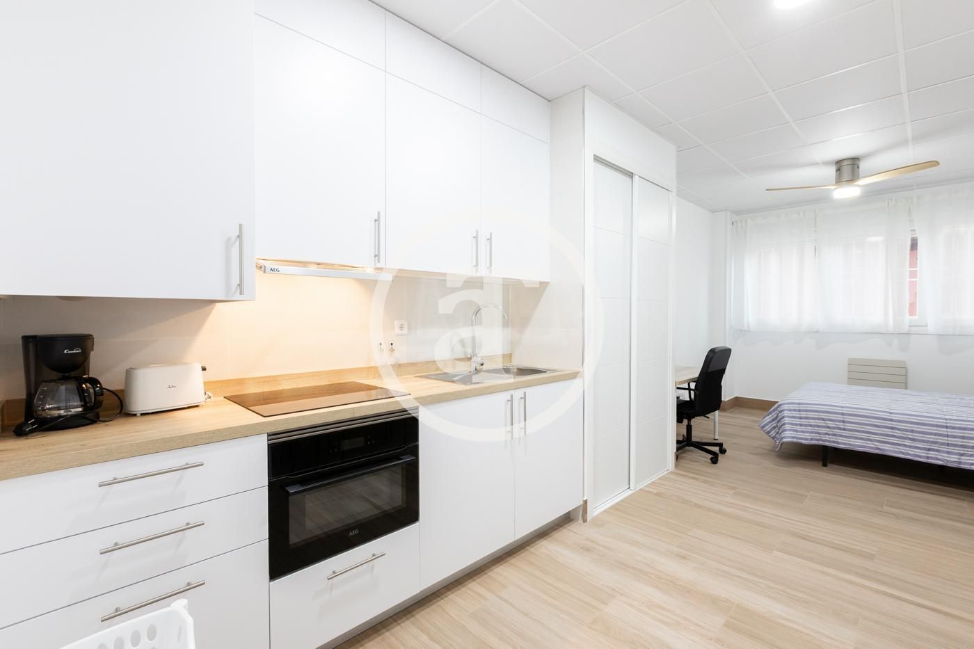 Welcome to your new cozy studio apartment at Madrid Capital! This stylish and compact living space offers everything you need for comfortable living. The open layout provides a versatile space for living and sleeping, with a modern kitchenette and a sleek bathroom. With its convenient location, you'll have easy access to nearby amenities and attractions. Priced affordably at € 1,040, this studio is a great option for those seeking a convenient and compact living arrangement. Don't miss out – schedule a viewing today!