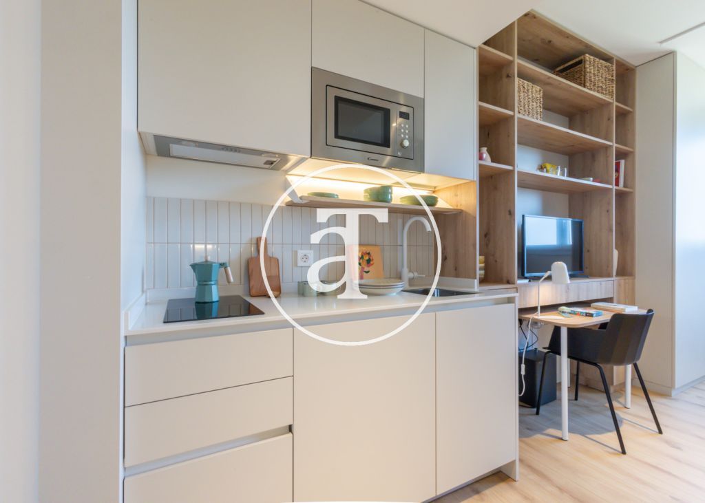 Flex Living monthly accommodation with double bed, private kitchen and bathroom