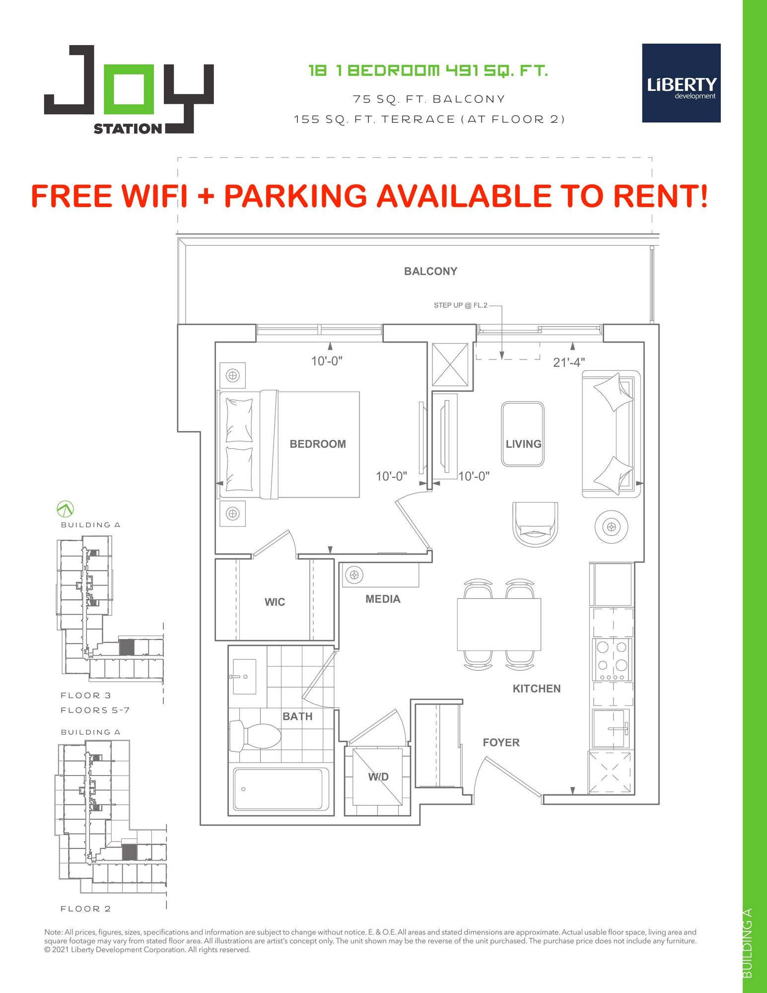 $ 1,800/month, min. 1 bedroom