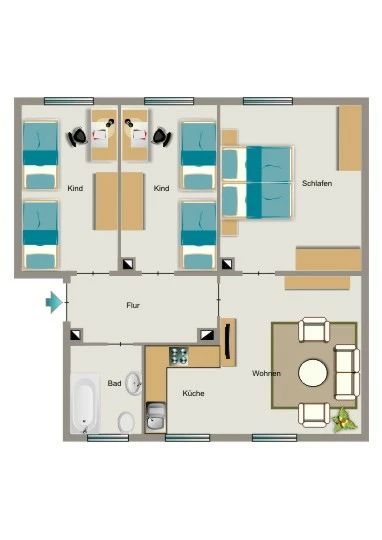 € 600/month, min. 4 bedrooms