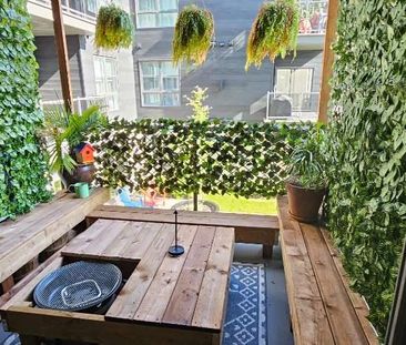 Bright garden-level condo with an open-concept layout, wo...