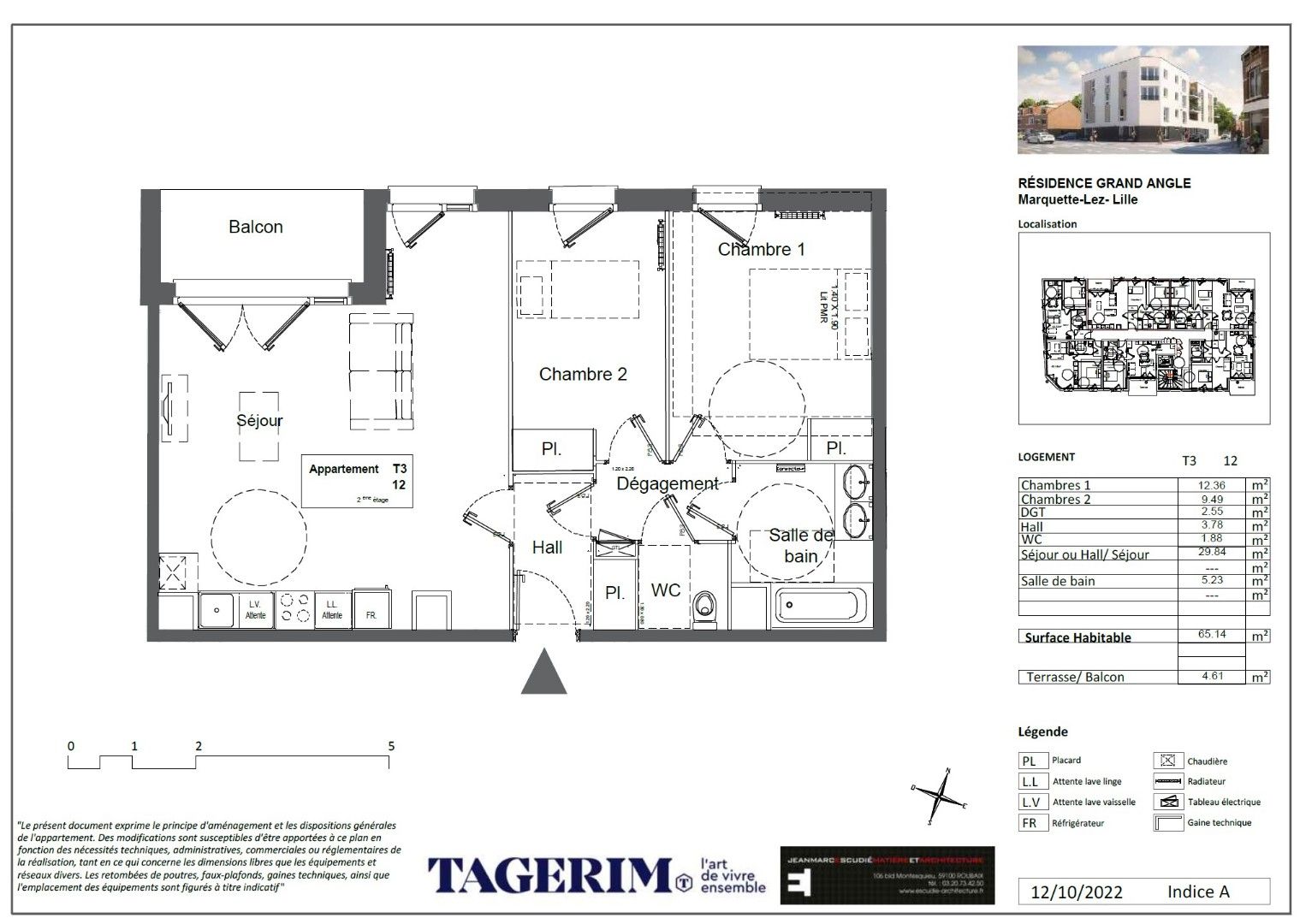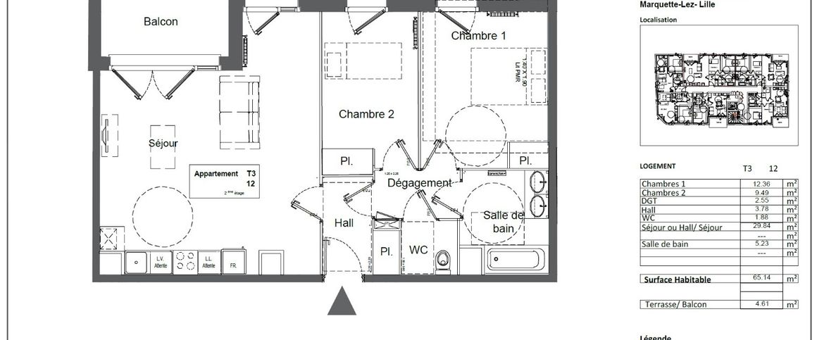 Location Appartement 3 pièces 65m² MARQUETTE LEZ LILLE 59520
