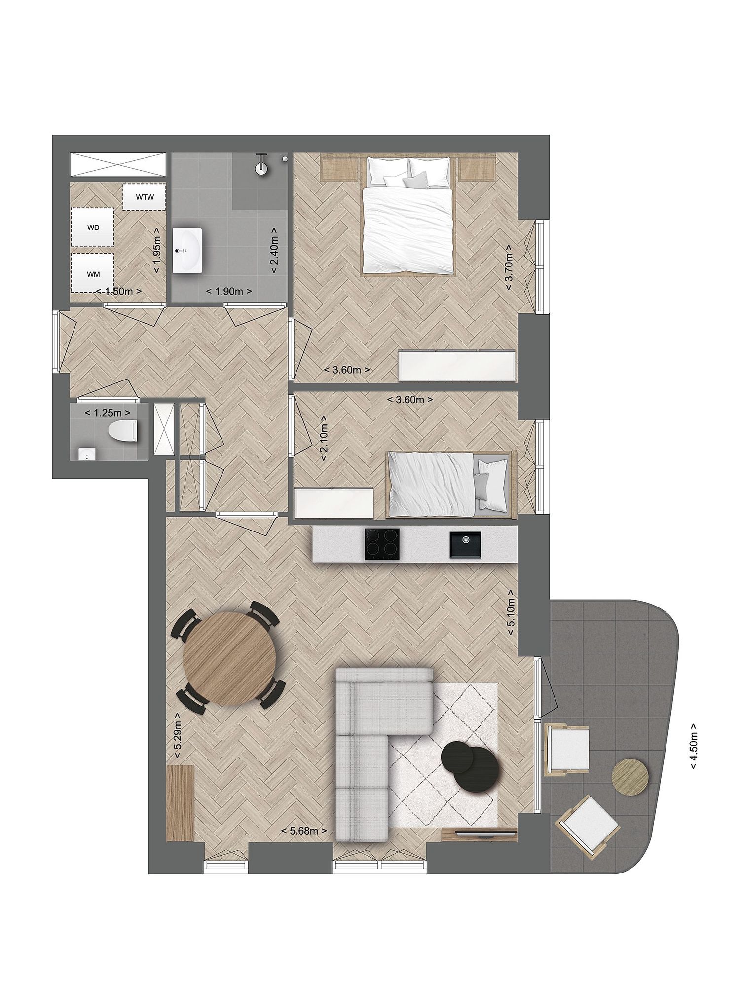 € 1,200/month, min. 3 bedrooms