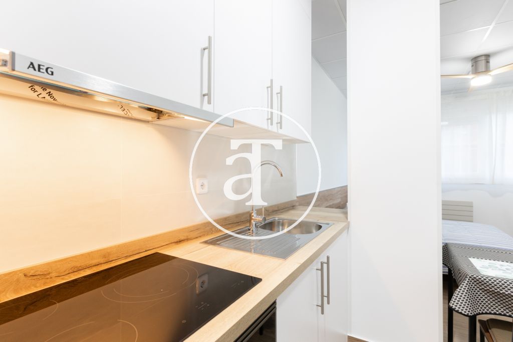 Welcome to your new cozy studio apartment at Madrid, Latina! This stylish and compact living space offers everything you need for comfortable living. The open layout provides a versatile space for living and sleeping, with a modern kitchenette and a sleek bathroom. With its convenient location, you'll have easy access to nearby amenities and attractions. Priced affordably at € 990, this studio is a great option for those seeking a convenient and compact living arrangement. Don't miss out – schedule a viewing today!