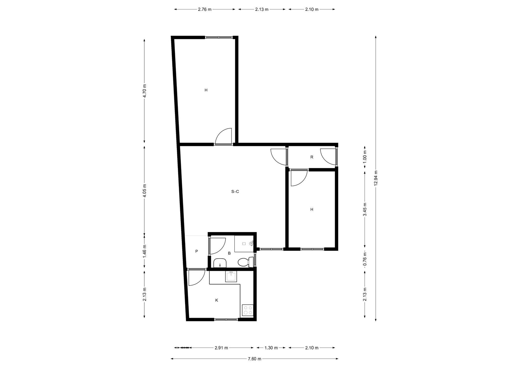 € 1,200/month, min. 2 bedrooms
