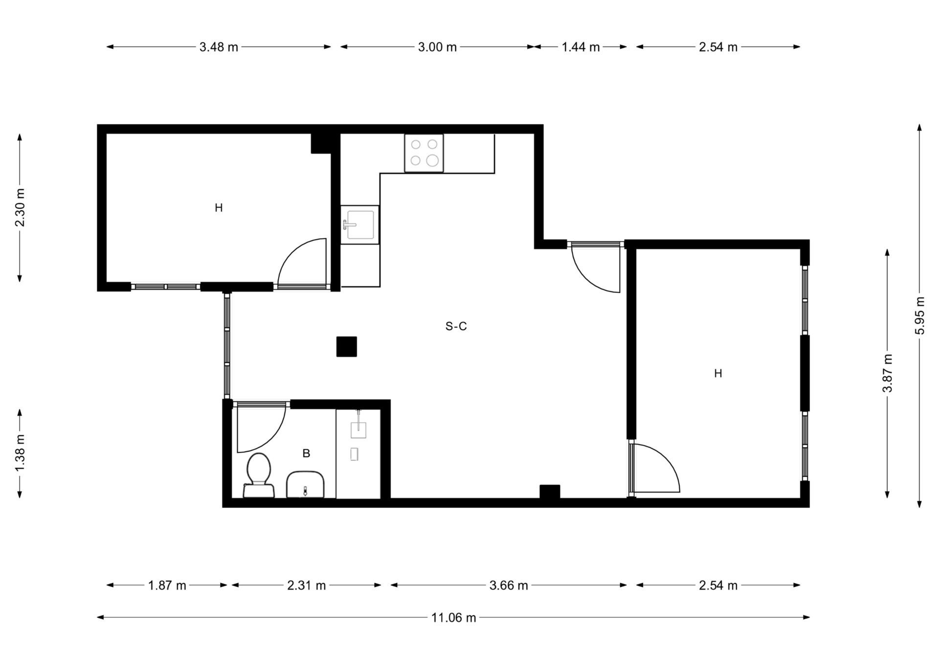 € 1,000/month, min. 2 bedrooms