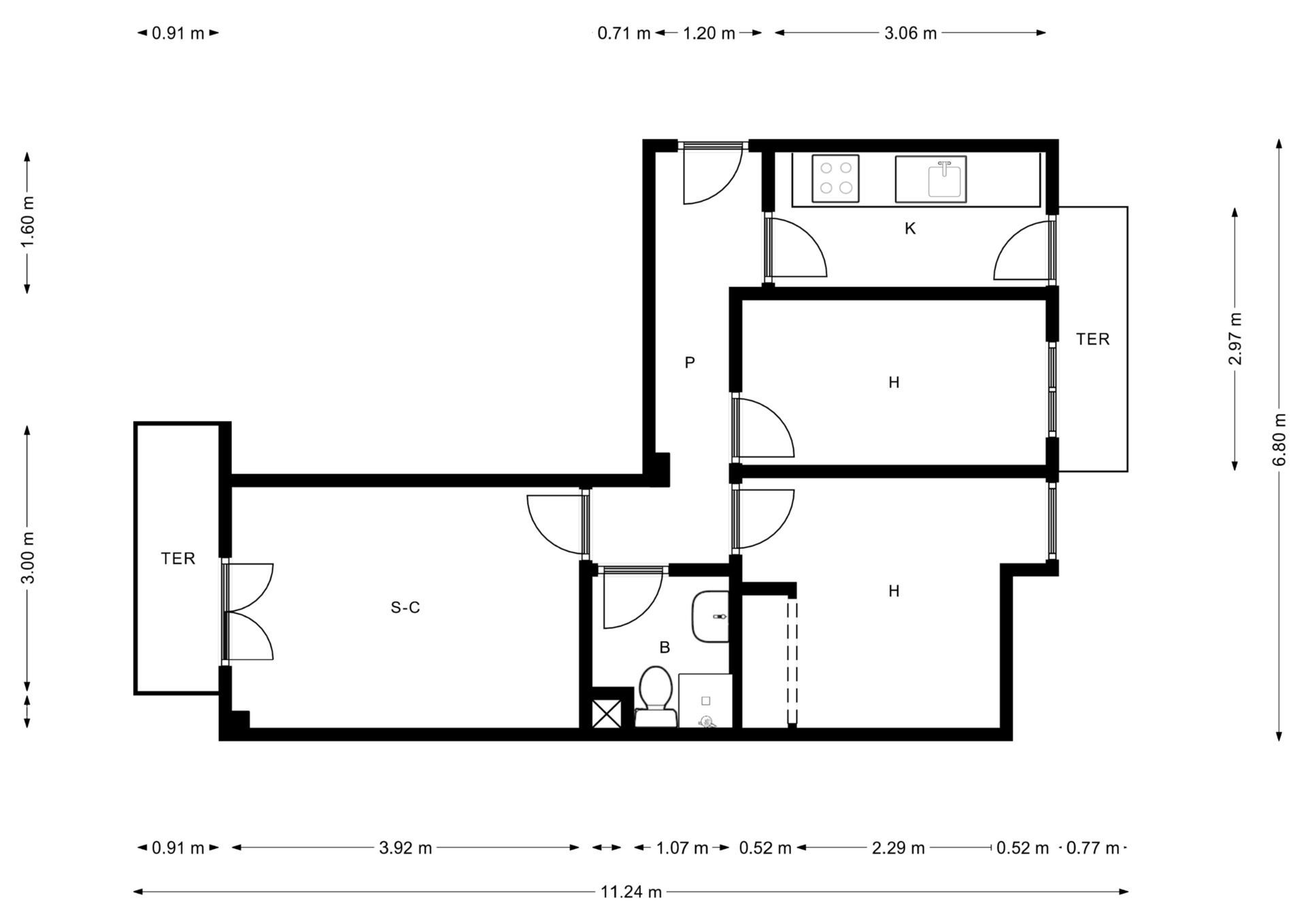 € 1,200/month, min. 2 bedrooms