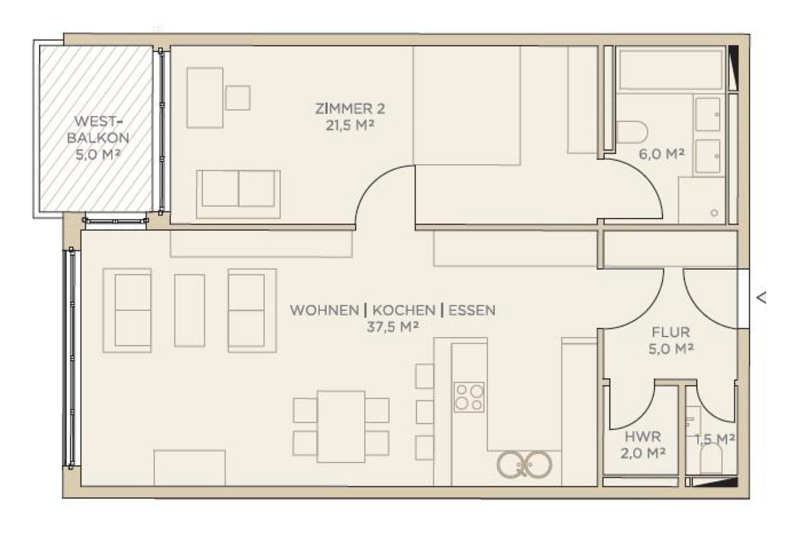 € 2,000/month, min. 2 bedrooms