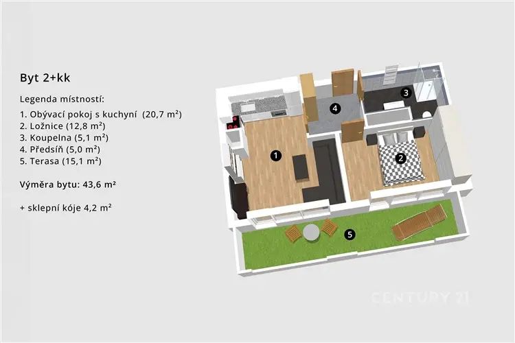 Kč 22,000/month, min. 2 bedrooms