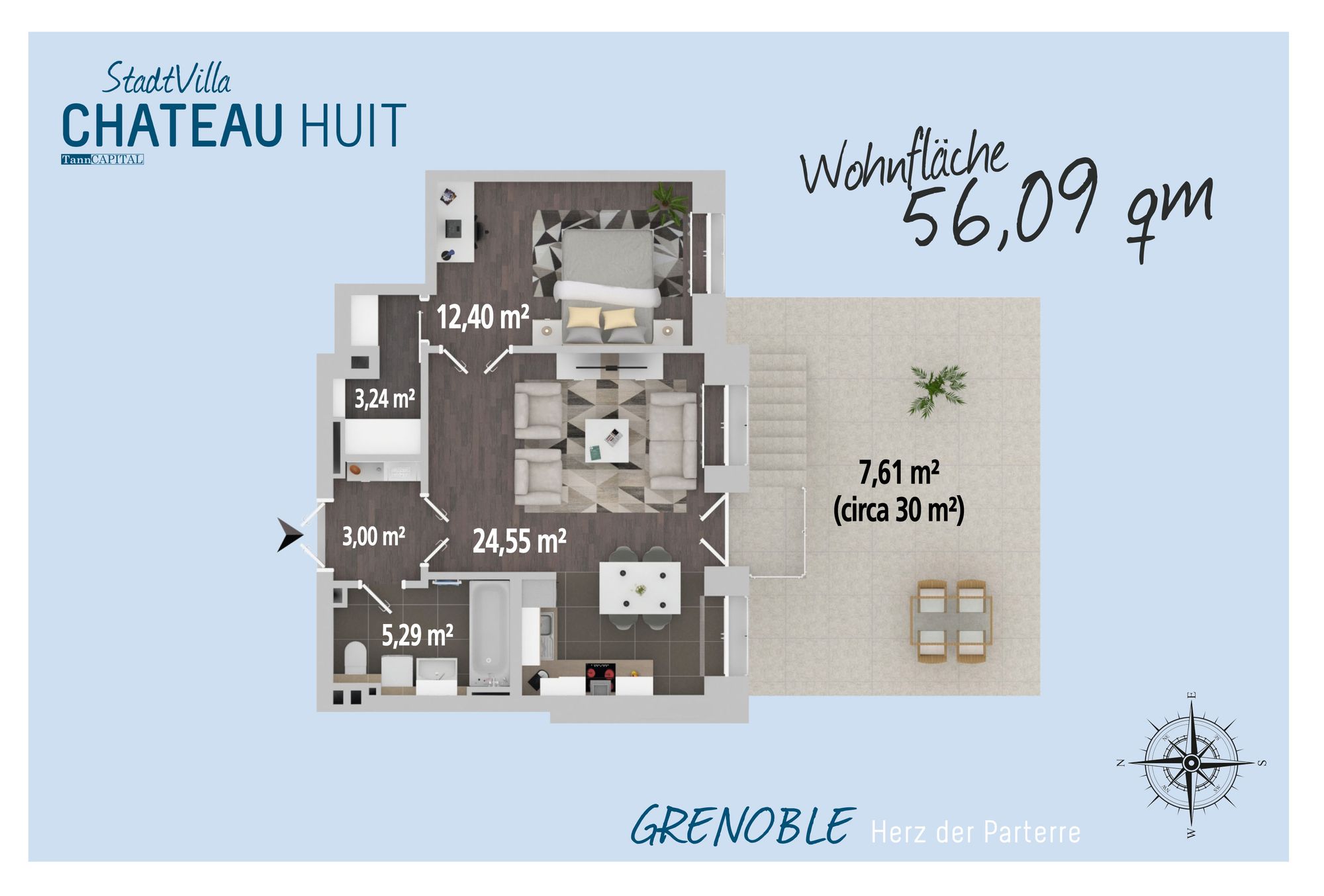 € 600/month, min. 2 bedrooms