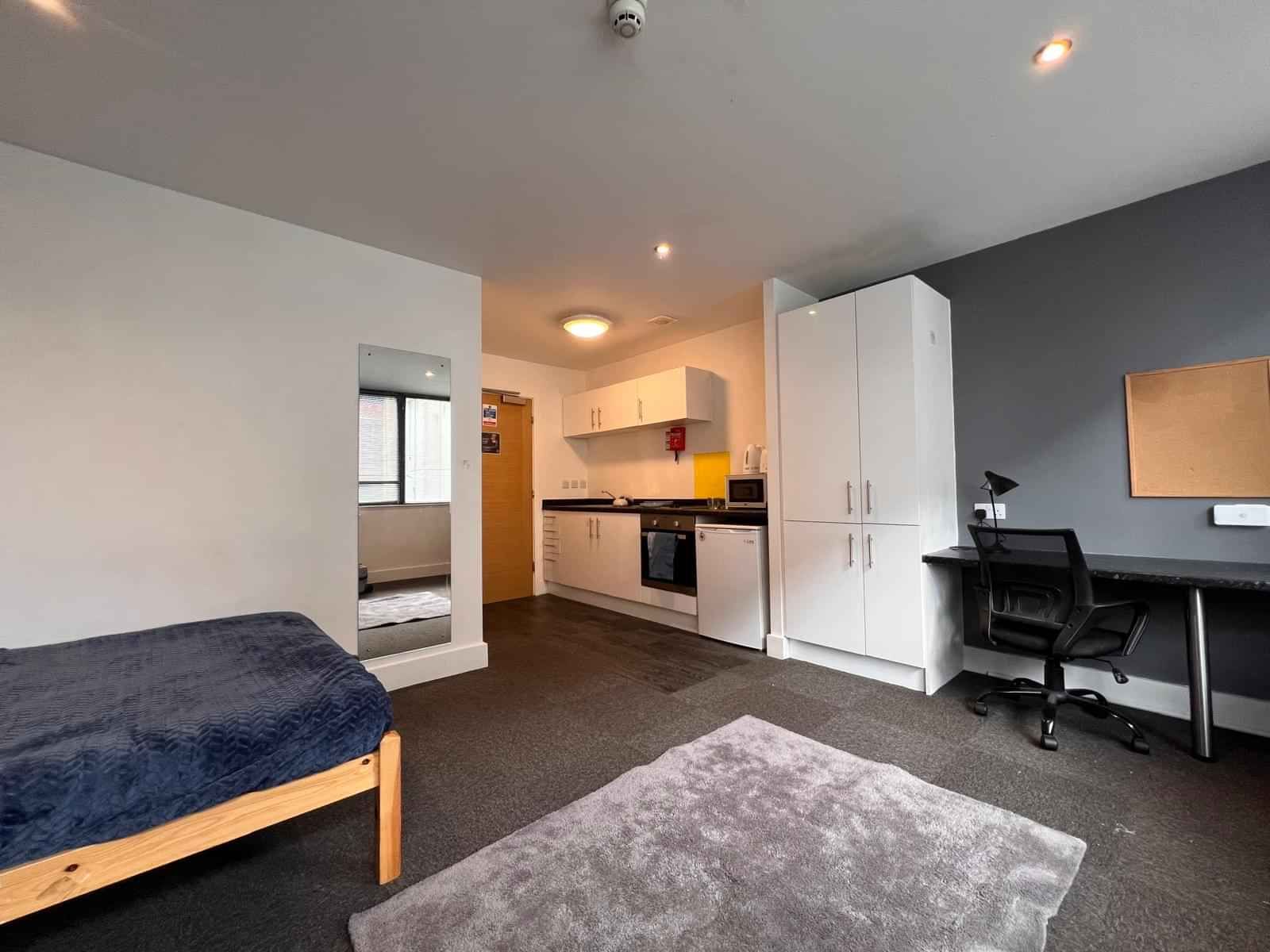Welcome to your new cozy studio apartment at 1 Goldsmith St, NG1 5ND, Nottingham! This stylish and compact living space offers everything you need for comfortable living. The open layout provides a versatile space for living and sleeping, with a modern kitchenette and a sleek bathroom. With its convenient location, you'll have easy access to nearby amenities and attractions. Priced affordably at £ 776, this studio is a great option for those seeking a convenient and compact living arrangement. Don't miss out – schedule a viewing today!