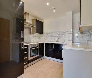 Modern two-bedroom flat with open-plan living, sleek kitc...