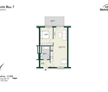 Die 2-Zimmer-Wohnung befindet sich im 2. Obergeschoss (oh...