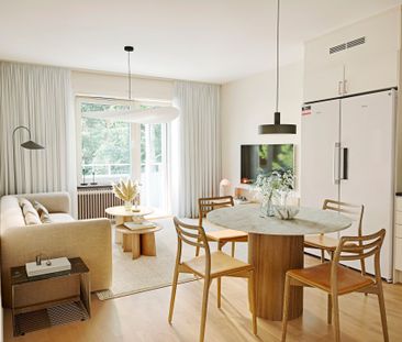 Ljus och fräsch etagelägenhet med öppen spis och stor klä...