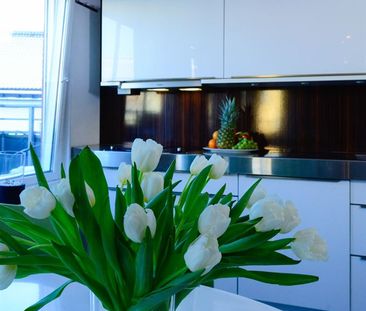 Modern loft-lägenhet med New York känsla precis ovanför C...