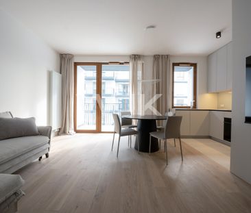 Nowe mieszkanie w Wilanowie – 44 m² - salon z aneksem kuc...