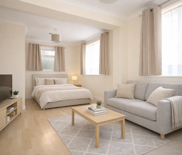 A modern and larger-than-average studio apartment set wit...