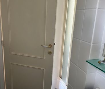 Deze onlangs gerenoveerde studio heeft een moderne badkam...