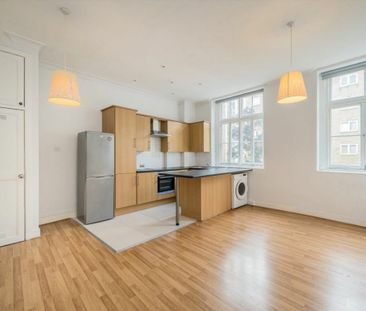 A large one-bedroom apartment featuring high ceilings, a ...