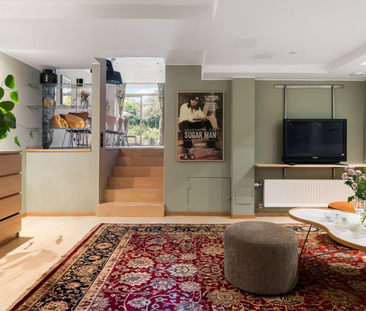 Lägenhet med townhousekänsla och södervänd, privat trädgå...