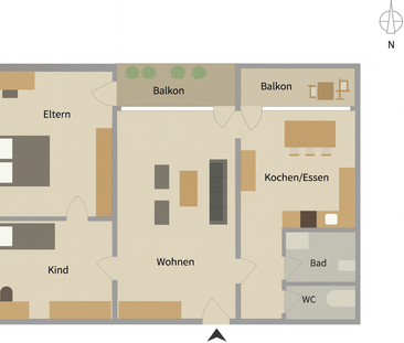 Helle 3,5 Zimmer Wohnung. Zwei Schlafzimmer, offener Wohn...