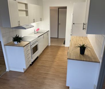 Totalrenoverad lägenhet en våning upp med balkong och hög...