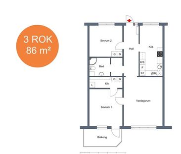 Hyresrätt på Vallgatan 7 i Tranås med 2 rum (62 m²). Besö...