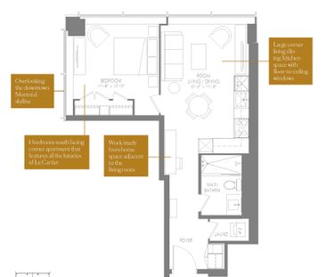 Studio élégant et bien aménagé situé au coeur du Quartier...