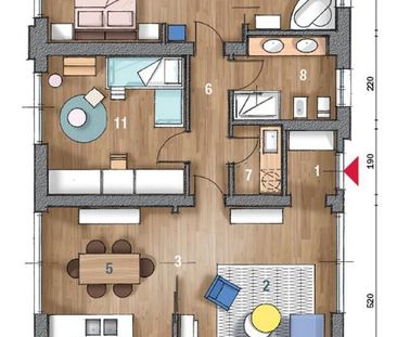 L'appartamento trilocale presenta un ingresso spazioso ch...