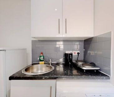 A newly repainted and bright top-floor bedsit just moment...