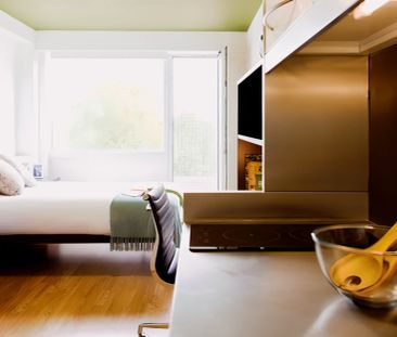 This bright and stylish studio apartment is on the fourth...