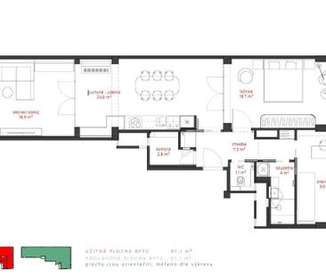 Pěkný nový byt 1+kk, o ploše 34m + balkon, ve 3. patře no...
