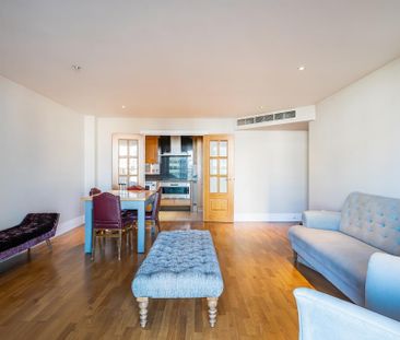 This stylish two-bedroom apartment on the river bank with...