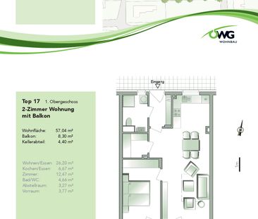 Die 2-Zimmer-Wohnung befindet sich im 2. Obergeschoss (oh...